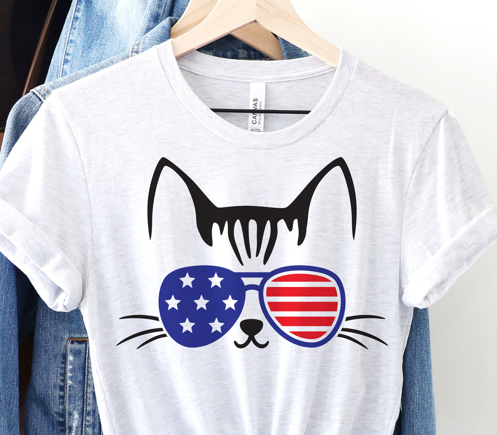 4TH of July Cat with USA Flag Sunglasses (SVG DXF PNG)