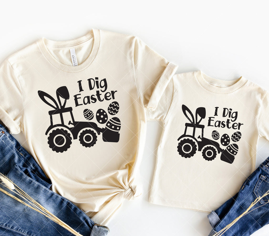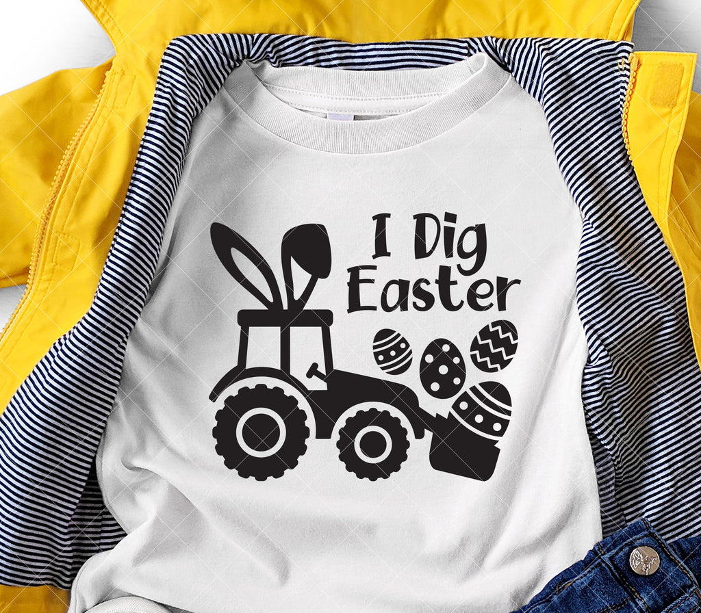 - Kids Easter Excavator SVG PNG DXF | “I Dig Easter” Bunny Construction T-Shirt Design