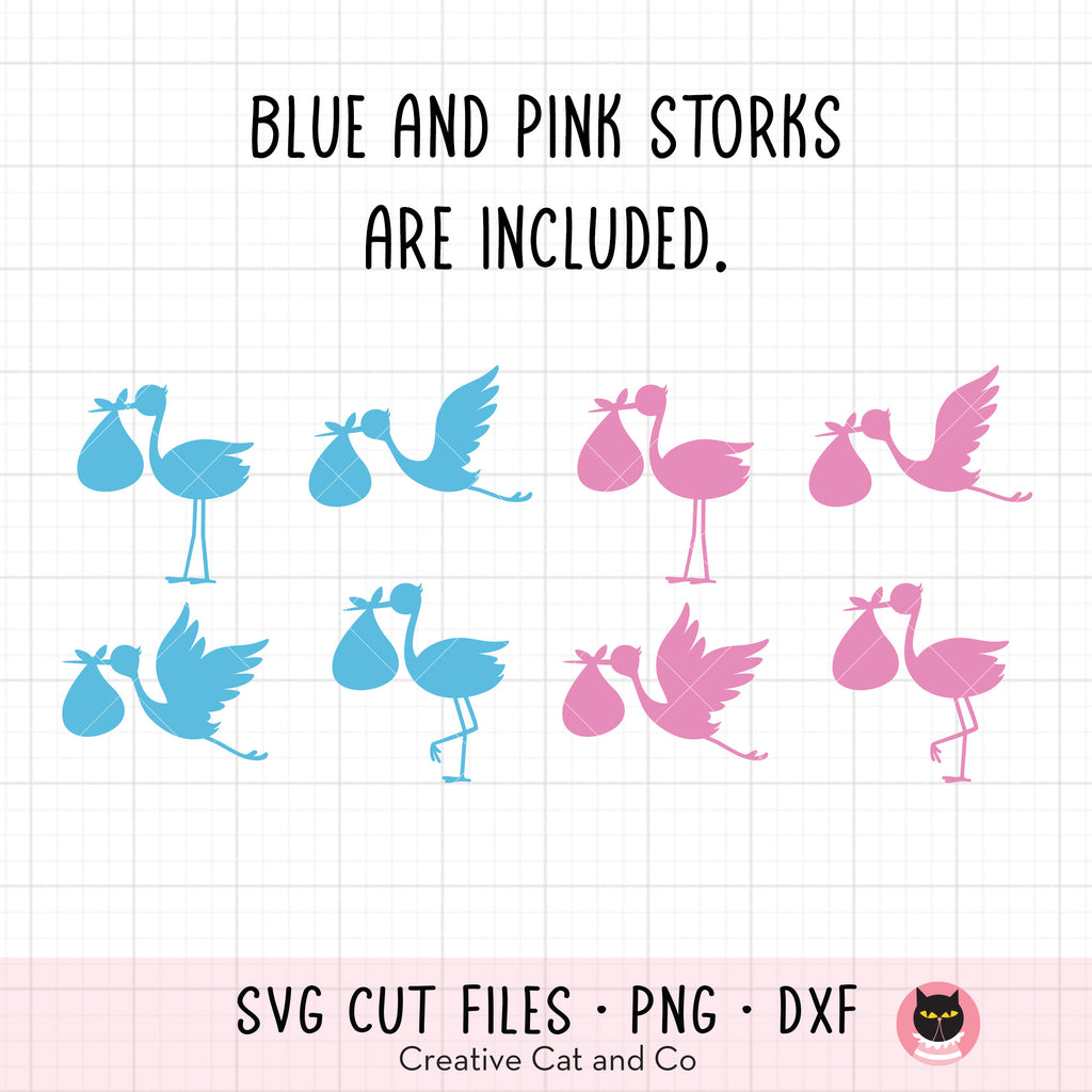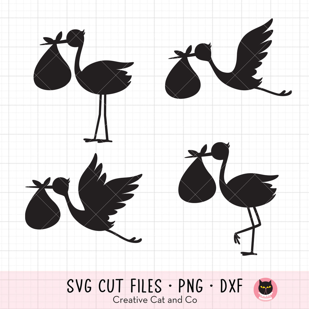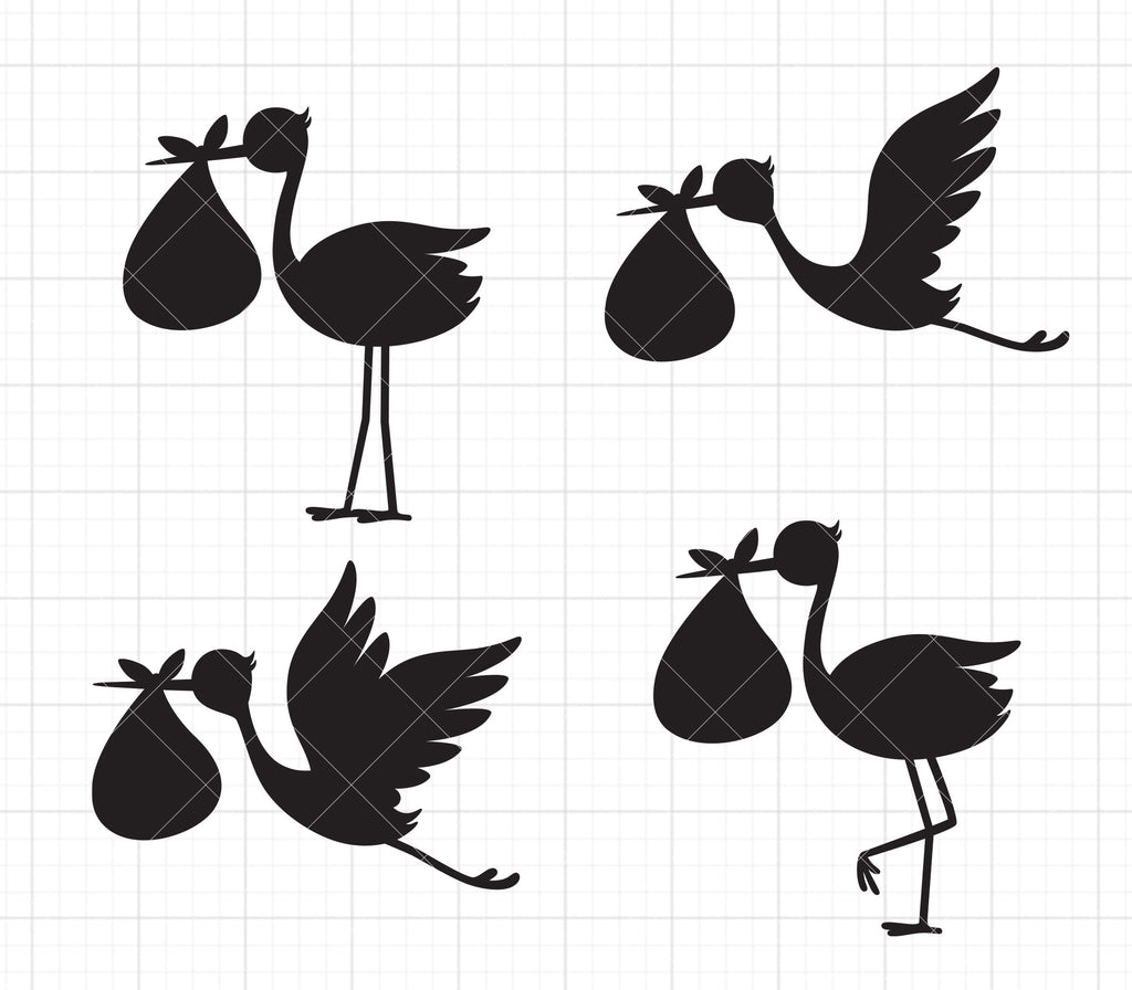- Stork Delivering Baby SVG PNG DXF | Baby Shower & Announcement Stork Silhouettes