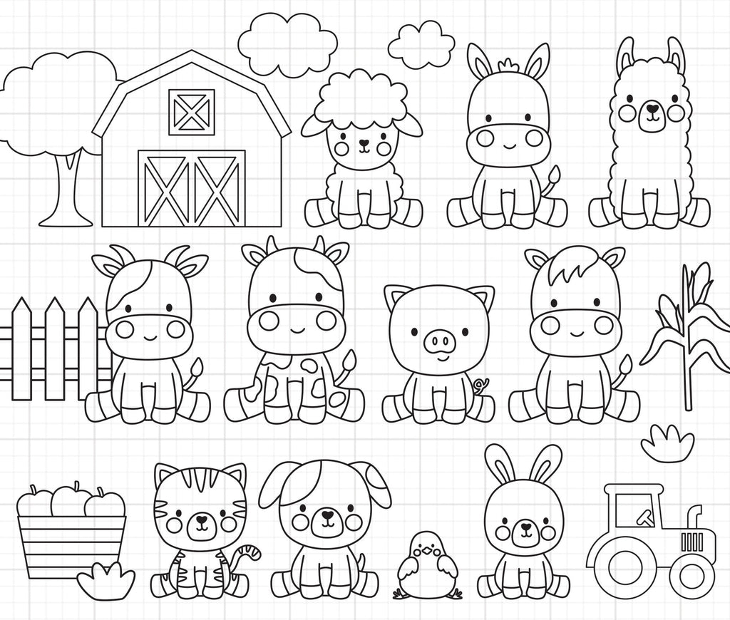 - Farm Barn Animal Outlines Kid Coloring Svg Dxf Png