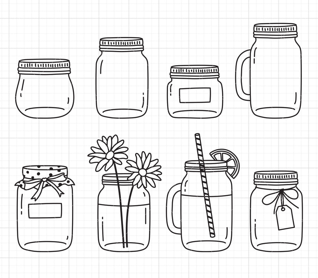 - Mason Glass Jars Sketch Drawing SVG DXF PNG
