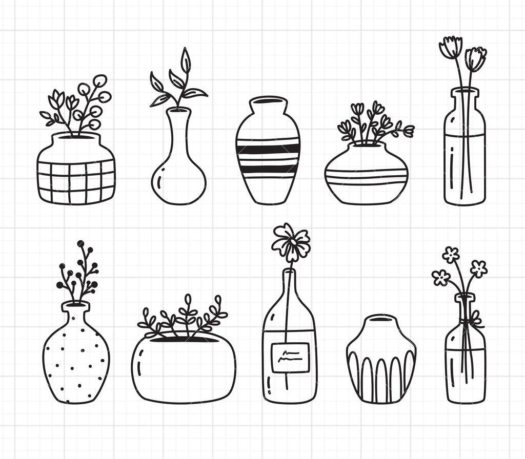 - Modern Flower Vases Hand Drawn Sketch SVG DXF PNG