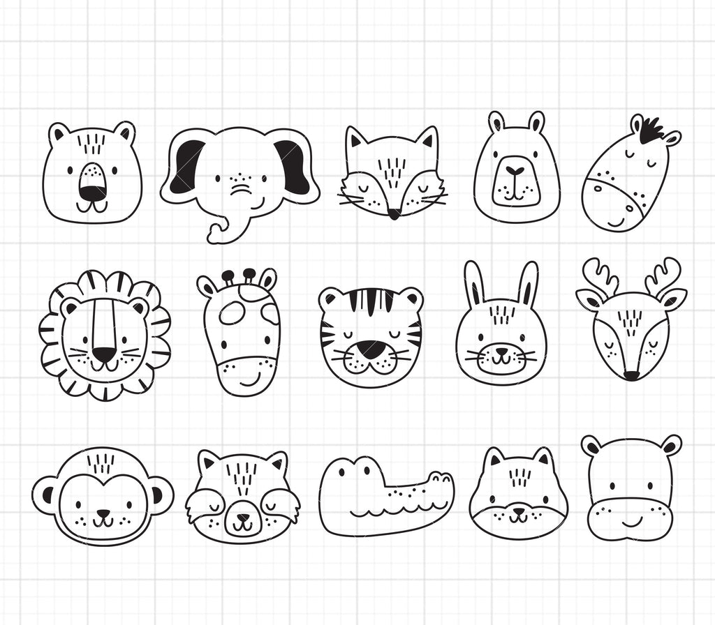 Add a touch of wild charm to your projects with this bundle of adorable animal face outlines. Featuring black and white line art of various wildlife species, these SVG and PNG files are perfect for coloring pages, drawings, and crafts. Ideal for kids' activities, educational resources, and creative designs.