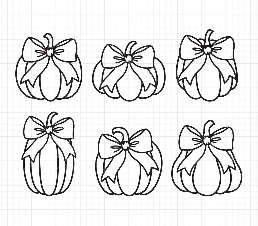 - Pumpkin with Bow Outline SVG PNG DXF | Black & White Pumpkin Line Art Set