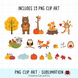 - Fall Woodland Animals PNG Clipart | Whimsical Autumn Animal Bundle with Leaves & Pumpkins