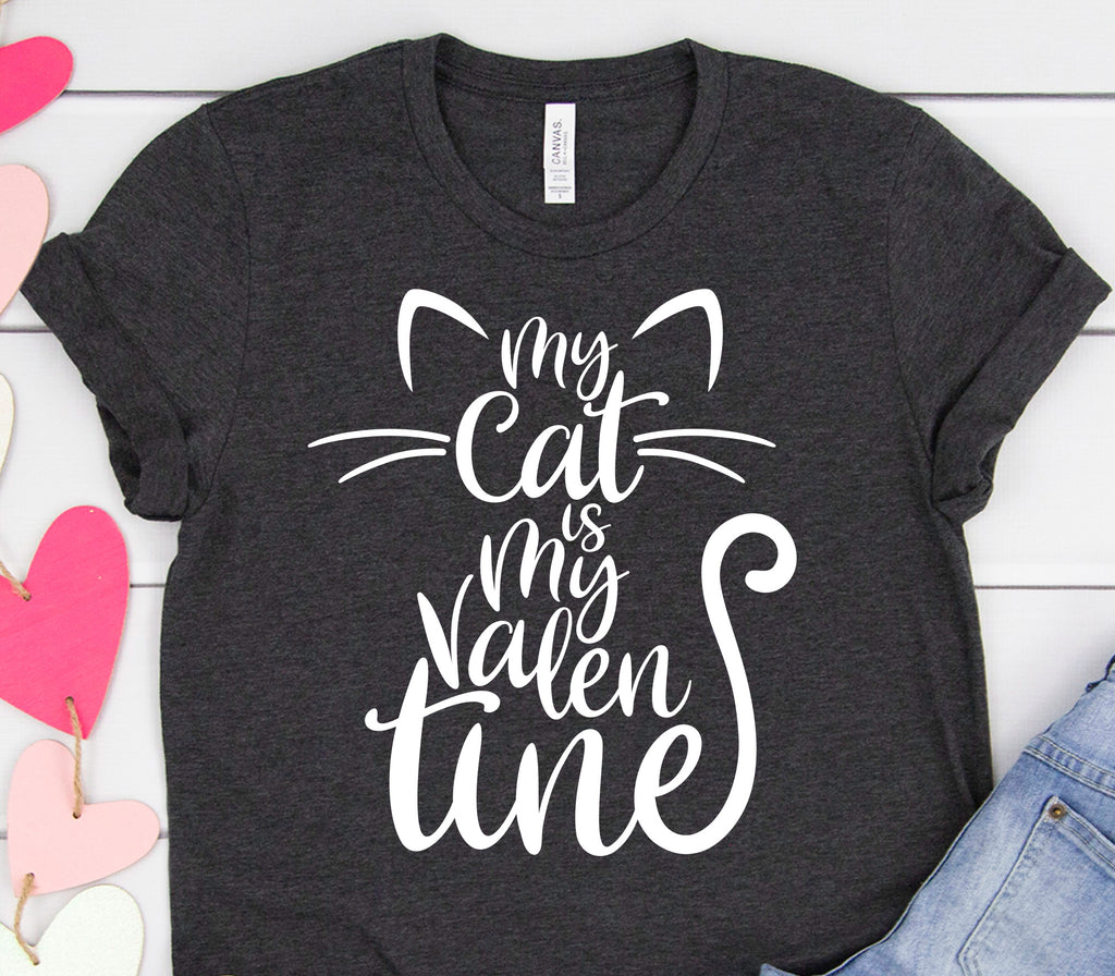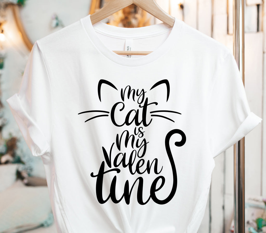 My cat is my Valentine SVG and DXF cut files. Make a great Valentine’s Day t-shirt for any cat lover with this adorable Valentine cat design. Our cut files are compatible with Cricut and Silhouette cutting machines, and will make great adhesive vinyl and heat transfer vinyl for t-shirts, mugs, home decor, window decals, and more! High resolution 300 dpi PNG clip art is also included.