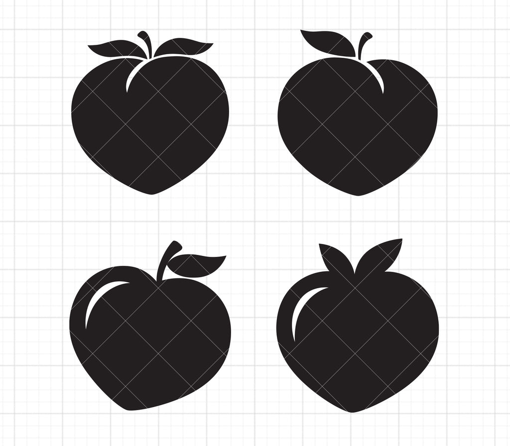 - Peach with Leaves Silhouette SVG PNG DXF | Minimal One Color Peach Clipart