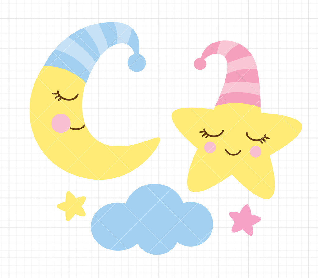 Sleeping Moon and Star Nursery Svg Dxf Png
