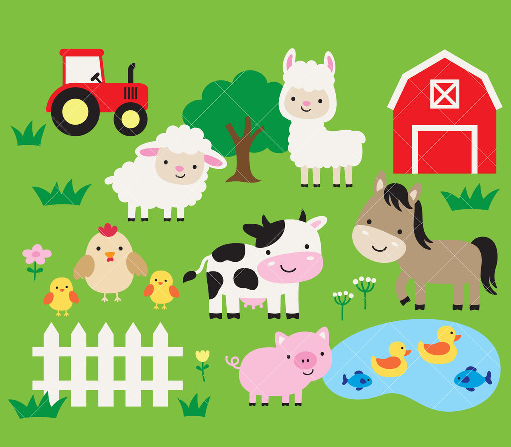 This farm animals SVG set includes a cow, horse, llama, sheep, pig, chickens, duck, fishes, red barn, tractor, and other elements. Our SVG files are layered and allow you to ungroup the design and cut by colors. Great for making vinyl for t-shirts, heat transfer iron-on, window decals, prints, and more! High-resolution PNG clip art with transparent background is also included and great for scrapbooking, card making, and paper crafting.