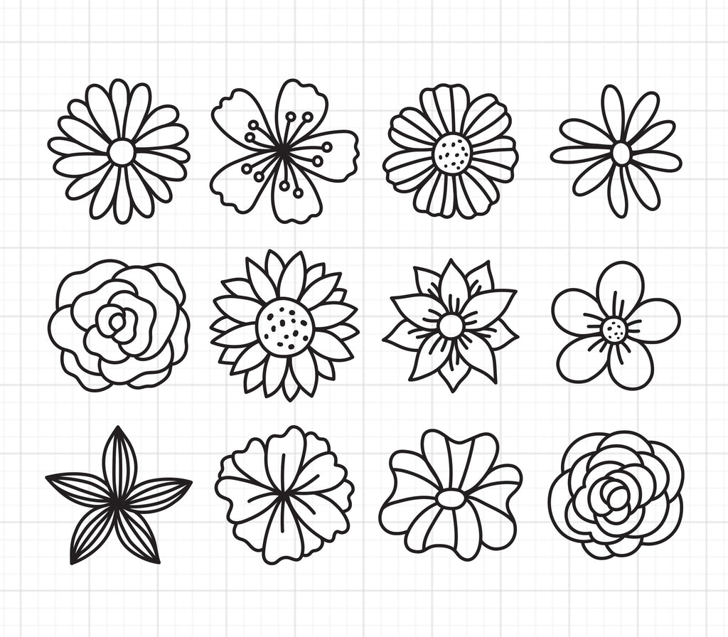 - Single Flower Doodle Outline Bundle Svg Dxf Png